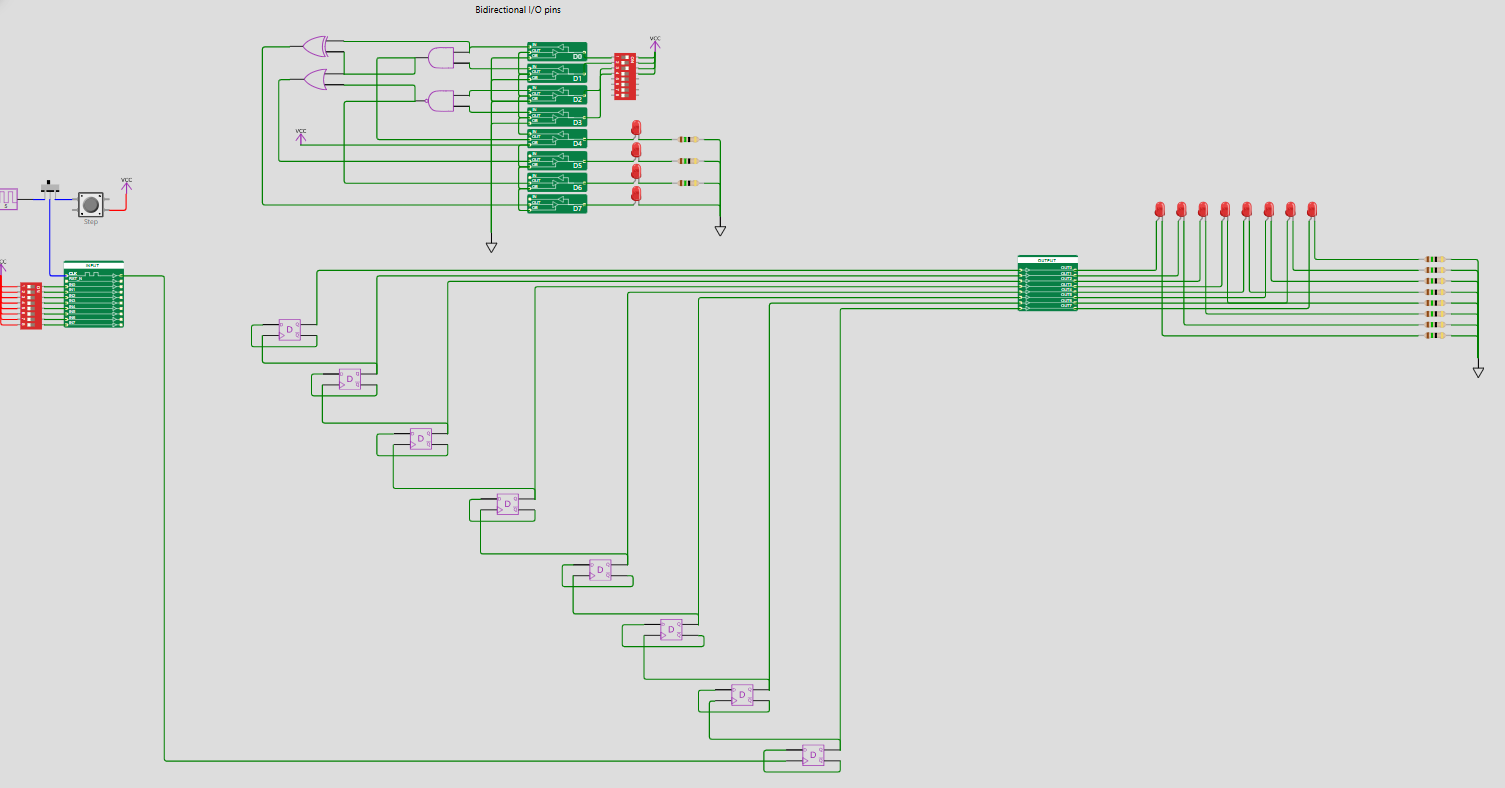 The I/O pins can be controlled with pushbuttons or DIP switches such as the ones that are in the schematic/circuit editor.