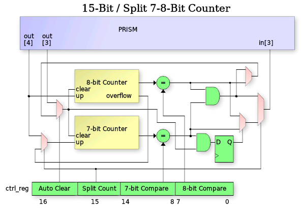The 15-bit counter is an up/clear counter controllable from the PRISM chroma.