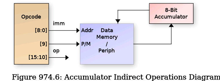 The Accumulator Indirect operations use immediate data in the instruction word to index indirectly into Data memory. That memory address is then used to load, store or both load and store (swap) data with the accumulator.