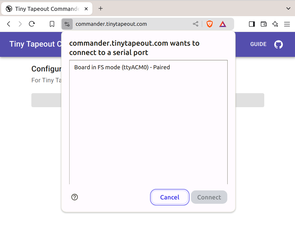 With the demoboard USB plugged into a computer, use one of those browsers to access https://commander.tinytapeout.com/.