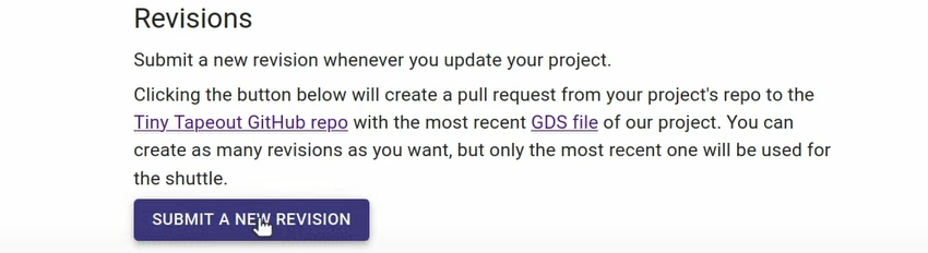 Every time you make a change to your design you’ll need to update the GDS and then submit a new revision. Designs can be changed up to the tapeout closing date.