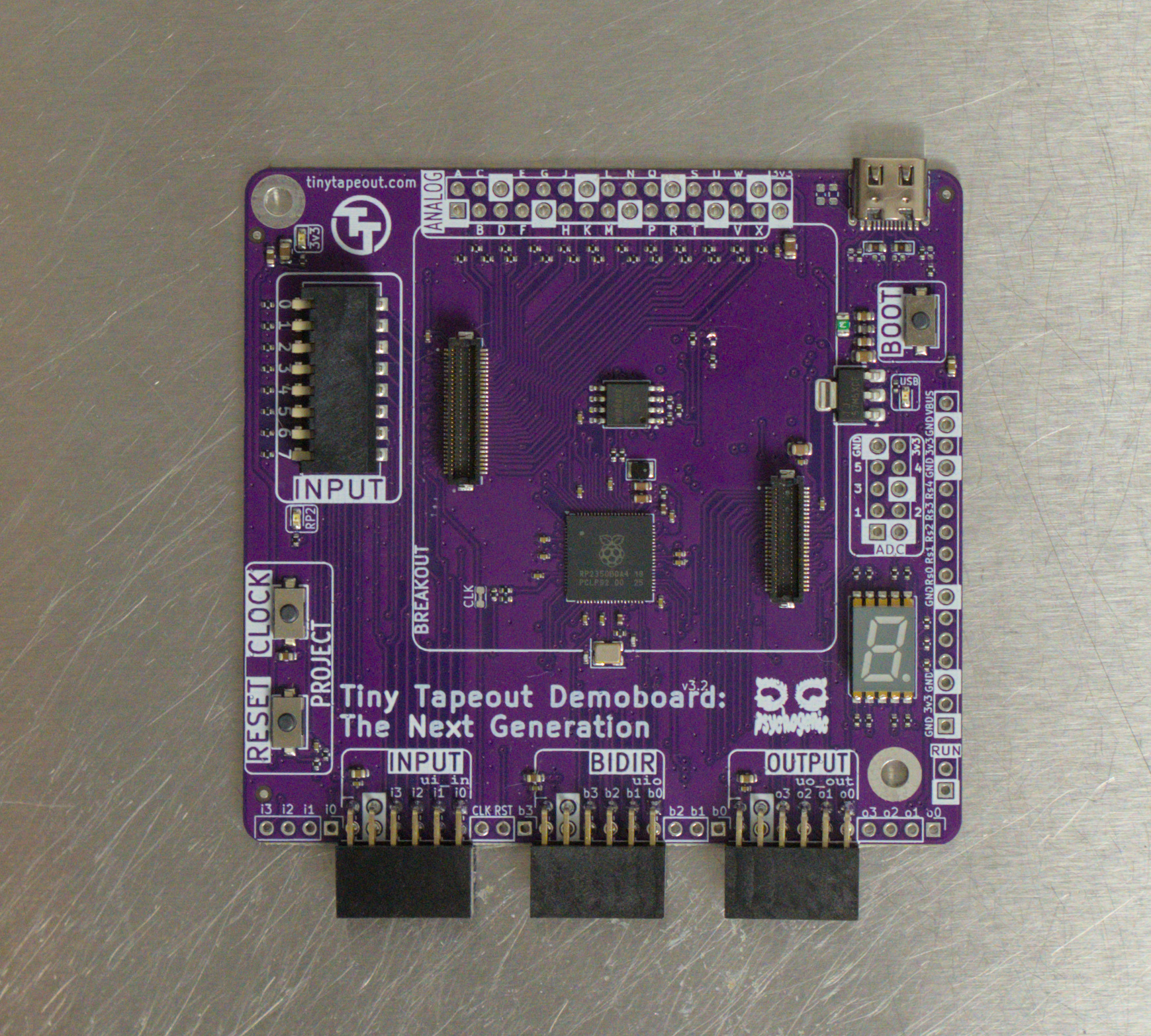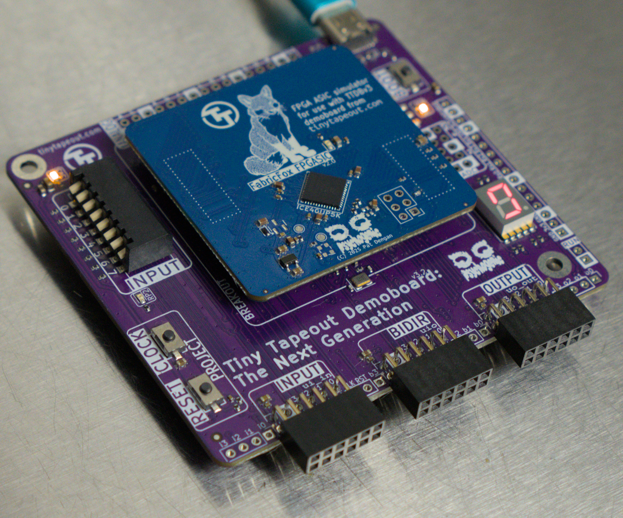 The ASIC comes installed on a breakout PCB which is itself installed on the TT Demoboard, and we also have an FPGA breakout that may be used to test pure digital designs prior to receiving your ASIC.