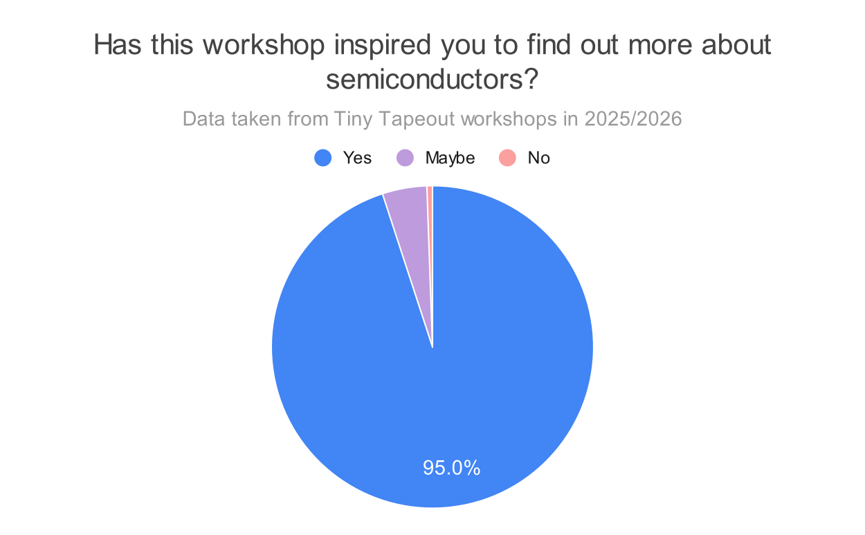 Participant feedback from our 2025-2026 workshops highlight the strong impact of our sessions, with high levels of inspiration to explore semiconductors further and consistently rating the experience highly.